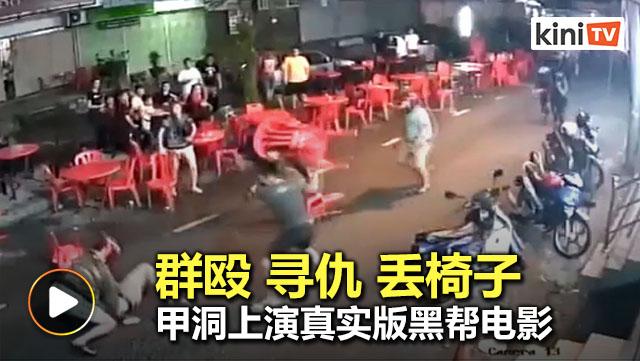 社交媒体今日疯传一段闭路电视画面,显示周日凌晨1时许,发生一场街头火拼。《中国报》报道,两帮人马疑似因寻仇而发生殴斗。视频上传者指,这场街头群殴发生在甲洞卫星市一家嘛嘛档。画面显示,一群头戴全罩头盔的男子袭击另一群在露天座位用餐的男子,接着两帮人马就开始恶斗。过程中,不仅拳打脚踢,还把丢起餐馆的椅子,犹如黑帮电影情节。