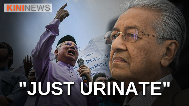 [KiniNews] Pejuang chairperson Dr Mahathir Mohamad has described ex-prime minister Najib Abdul Razak's "Malu Apa Bossku" slogan to a naked man receiving a foreign dignitary and then urinating in front of the guest.